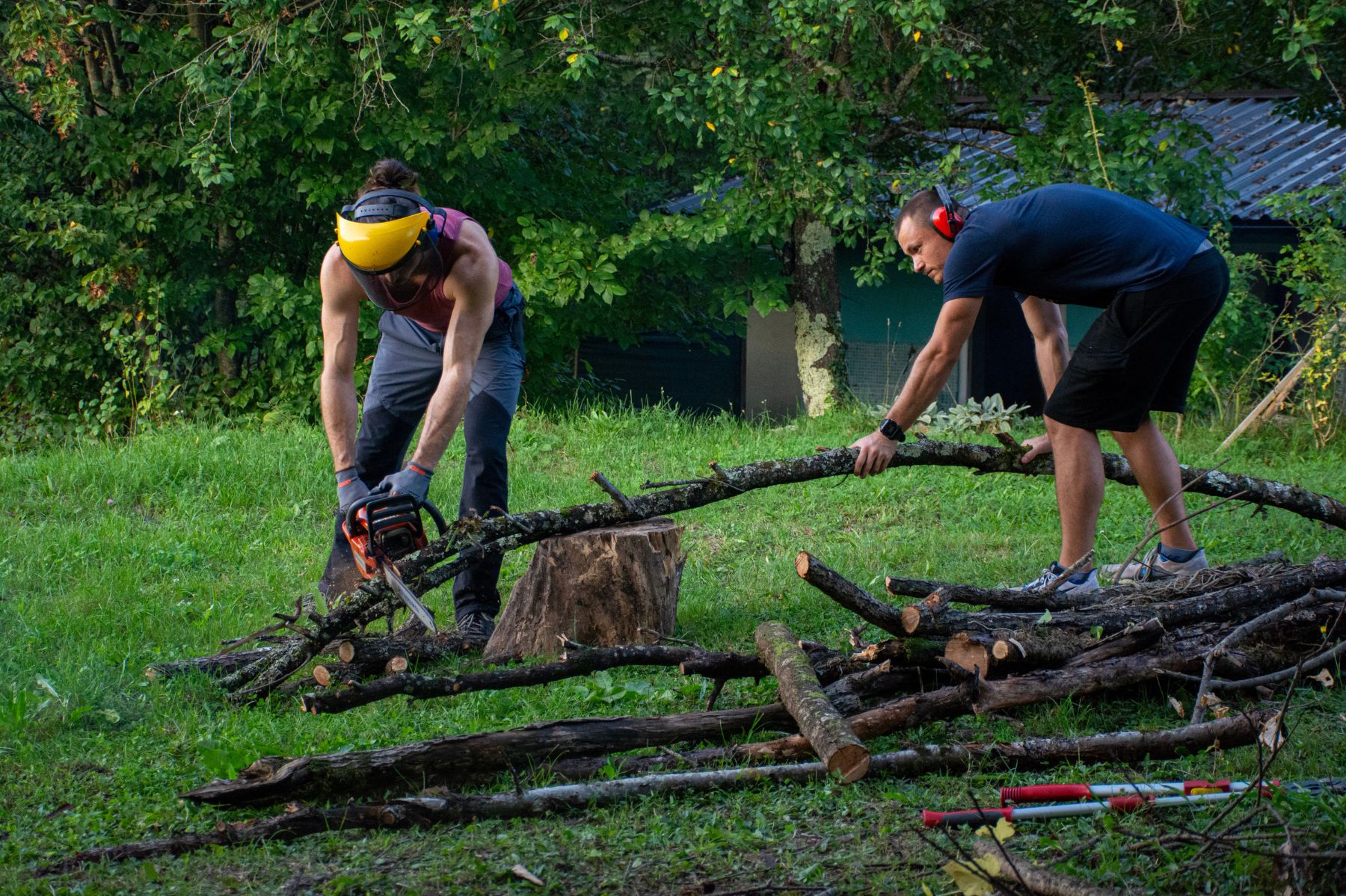 Večera smo izkoristili za druženje in petje ob tabornem ognju, ki so ga vse skozi naše bivanje skrbno vzdrževali čuvaji ognjišča. Vmes smo poskrbeli še za zalogo lesa, ki bo grel prihodnje obiskovalce tega lepega kotička.